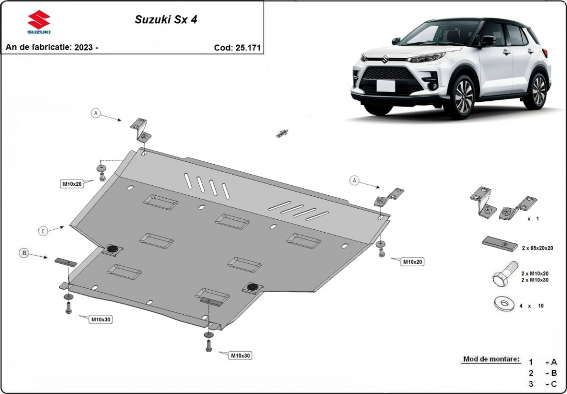 Aluminium cache sous moteur et de la boîte de vitesse Suzuki SX4 (2023-2026)