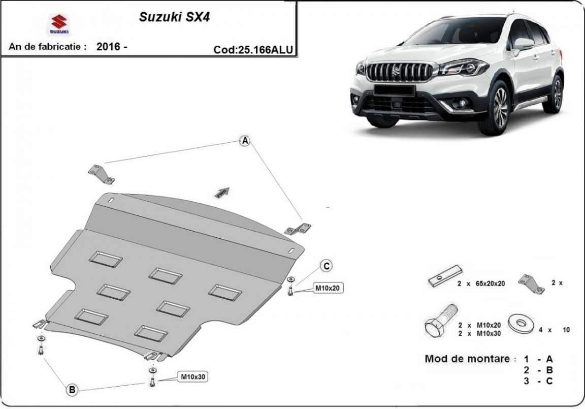 Aluminium cache sous moteur et de la boîte de vitesse Suzuki SX4 (2013-2023)
