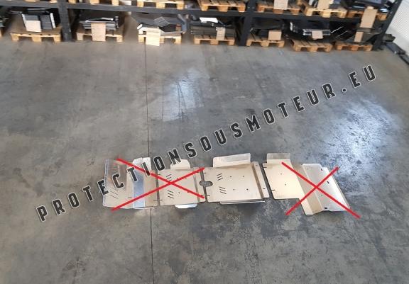 Le cache métallique protège: la boîte de vitesses Le cache de protection est réalisé en Aluminium avec une épaisseur de 4 mm. Les boucliers sont en aluminium, mais les supports de fixation sont en acier. Vis, écrous, pinces, tous les accessoires de fixation sont inclus. Toutes les plaques de protection sont revêtues de poudre pour prévenir la corrosion. L'extérieur de la plaque de protection est doté de renforts en Aluminium, ce qui augmente la résistance aux chocs. |