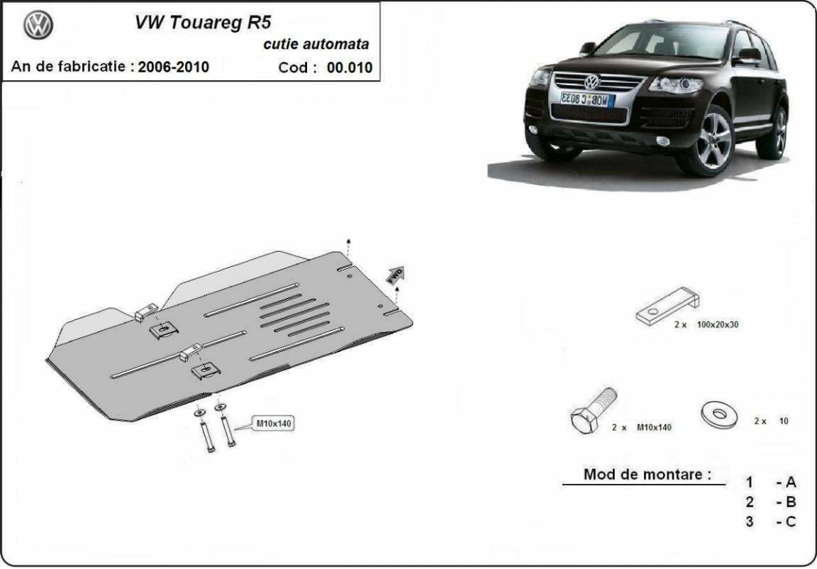 Cache de protection de la boîte de vitesse automatique Volkswagen Touareg 7L (2003-2010)