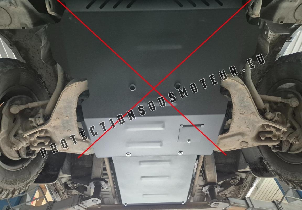 Le cache métallique protège: la boîte de vitesses Le cache de protection est réalisé en Acier thermolaqué avec une épaisseur de 2.5 mm. Vis, écrous, pinces, tous les accessoires de fixation sont inclus. Toutes les plaques de protection sont revêtues de poudre pour prévenir la corrosion. L'extérieur de la plaque de protection est doté de renforts en Acier thermolaqué, ce qui augmente la résistance aux chocs. |