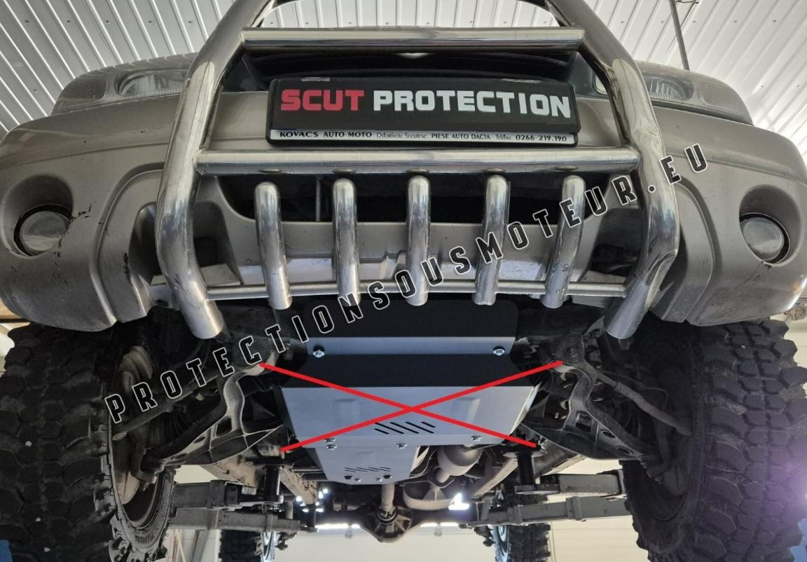 Le cache métallique protège: la boîte de vitesses Le cache de protection est réalisé en Acier thermolaqué avec une épaisseur de 3 mm. Vis, écrous, pinces, tous les accessoires de fixation sont inclus. Toutes les plaques de protection sont revêtues de poudre pour prévenir la corrosion. L'extérieur de la plaque de protection est doté de renforts en Acier thermolaqué, ce qui augmente la résistance aux chocs. |
