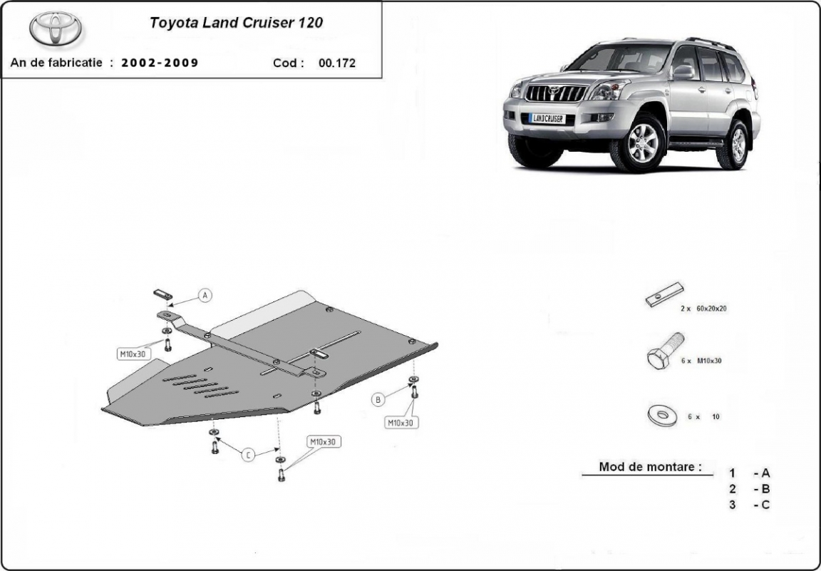 Le cache métallique protège: la boîte de vitesses Le cache de protection est réalisé en Acier thermolaqué avec une épaisseur de 2.5 mm. Vis, écrous, pinces, tous les accessoires de fixation sont inclus. Toutes les plaques de protection sont revêtues de poudre pour prévenir la corrosion. L'extérieur de la plaque de protection est doté de renforts en Acier thermolaqué, ce qui augmente la résistance aux chocs. |