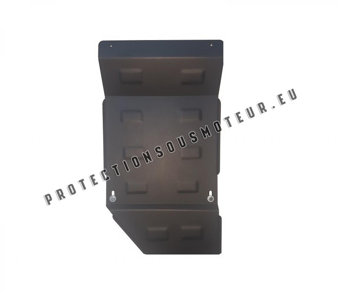Le cache métallique protège: la boîte de vitesses Le cache de protection est réalisé en Acier thermolaqué avec une épaisseur de 2.5 mm. Vis, écrous, pinces, tous les accessoires de fixation sont inclus. Toutes les plaques de protection sont revêtues de poudre pour prévenir la corrosion. L'extérieur de la plaque de protection est doté de renforts en Acier thermolaqué, ce qui augmente la résistance aux chocs. |