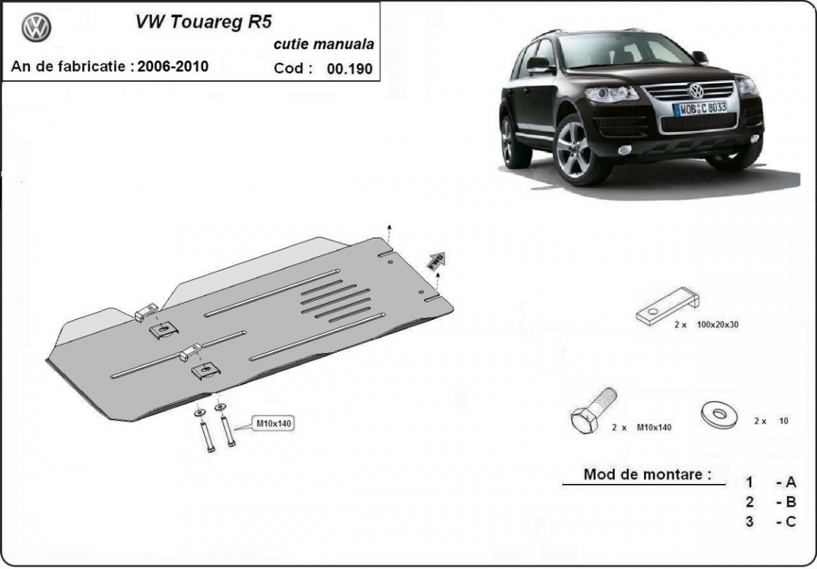 Le cache métallique protège: la boîte de vitesses Le cache de protection est réalisé en Acier thermolaqué avec une épaisseur de 3 mm. Vis, écrous, pinces, tous les accessoires de fixation sont inclus. Toutes les plaques de protection sont revêtues de poudre pour prévenir la corrosion. L'extérieur de la plaque de protection est doté de renforts en Acier thermolaqué, ce qui augmente la résistance aux chocs. |