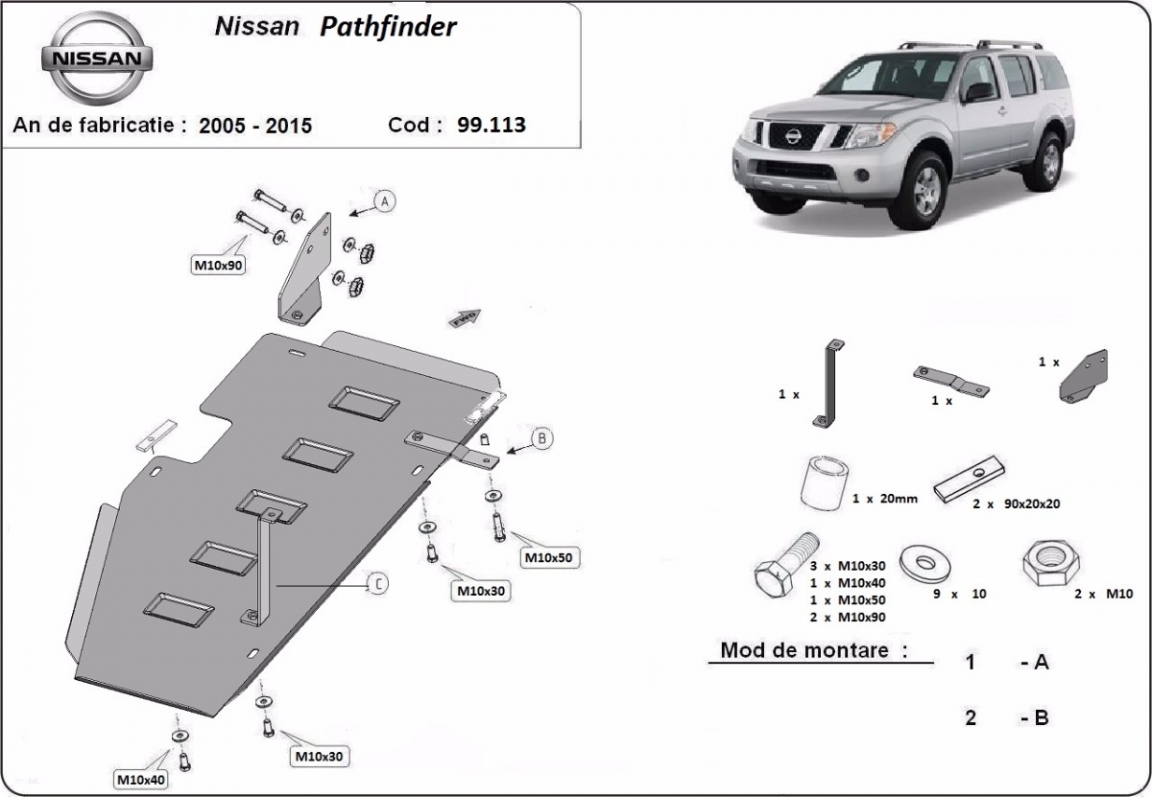 Cache de protection de la boîte de vitesse et de la différentiel Nissan Pathfinder