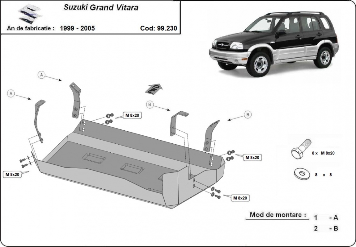 Cache de protection de réservoir Suzuki Grand Vitara (1999-2005)