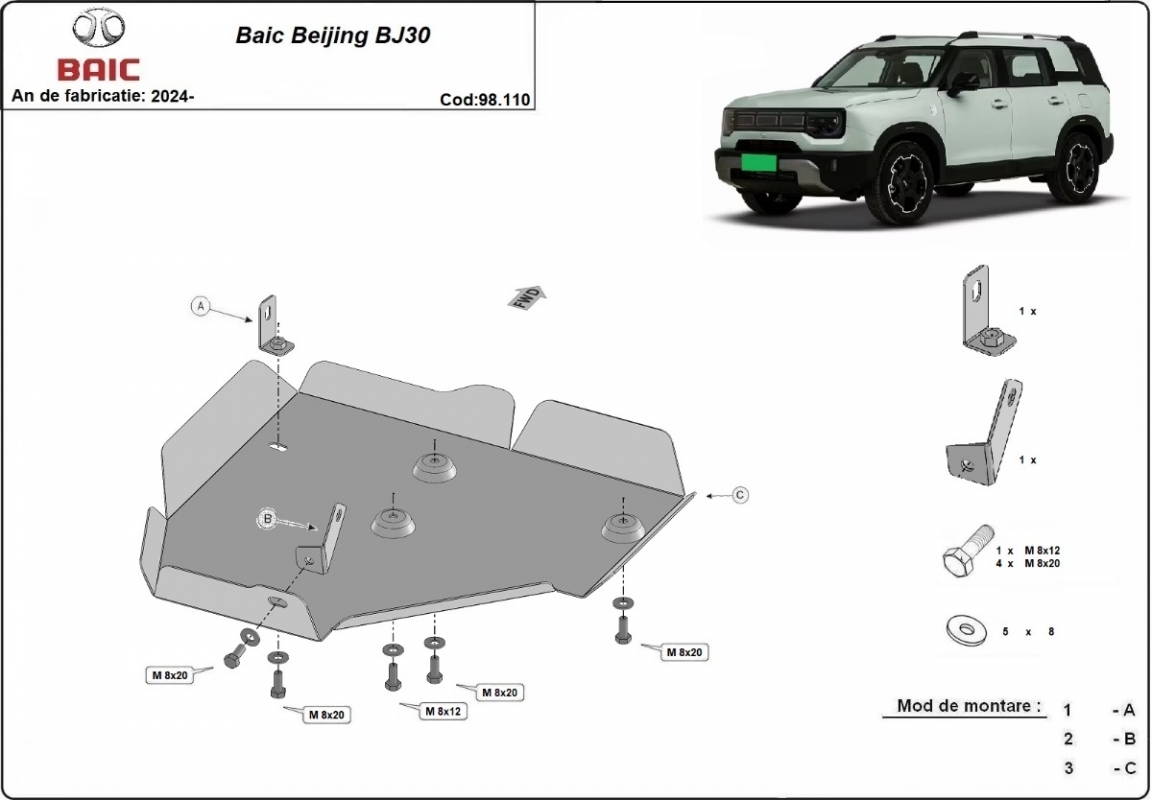 Cache de protection du différentiel Baic Beijing BJ30 (2024-2026)