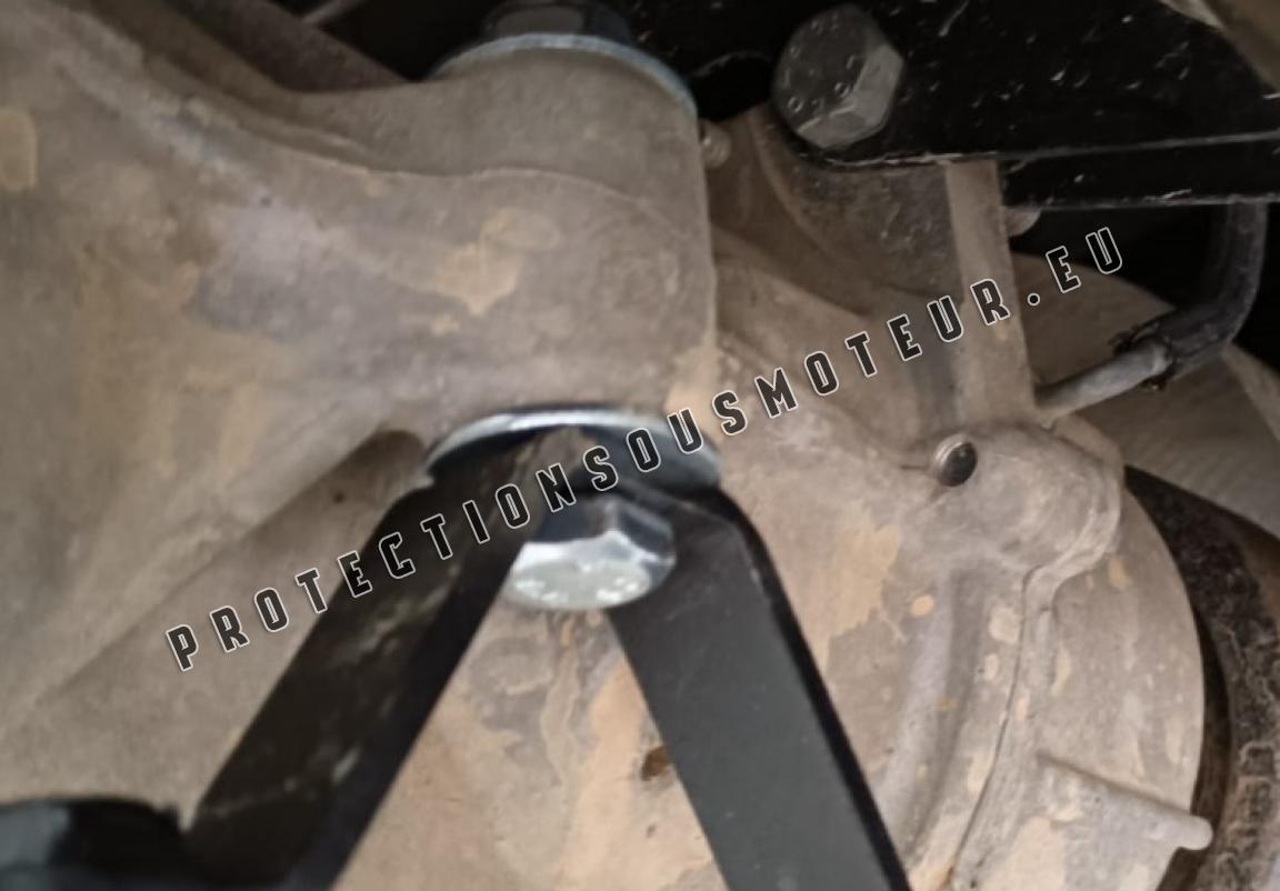 Le cache métallique protège: différentiel arriere Le cache de protection est réalisé en Aluminium avec une épaisseur de 4 mm. Les boucliers sont en aluminium, mais les supports de fixation sont en acier. Vis, écrous, pinces, tous les accessoires de fixation sont inclus. Toutes les plaques de protection sont revêtues de poudre pour prévenir la corrosion. L'extérieur de la plaque de protection est doté de renforts en Aluminium, ce qui augmente la résistance aux chocs. |