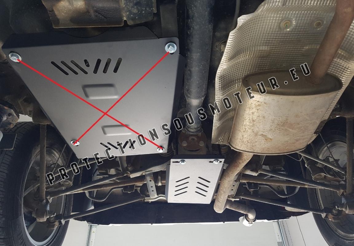 Le cache métallique protège: différentiel arriere Le cache de protection est réalisé en Acier thermolaqué avec une épaisseur de 2 mm. Vis, écrous, pinces, tous les accessoires de fixation sont inclus. Toutes les plaques de protection sont revêtues de poudre pour prévenir la corrosion. L'extérieur de la plaque de protection est doté de renforts en Acier thermolaqué, ce qui augmente la résistance aux chocs. |
