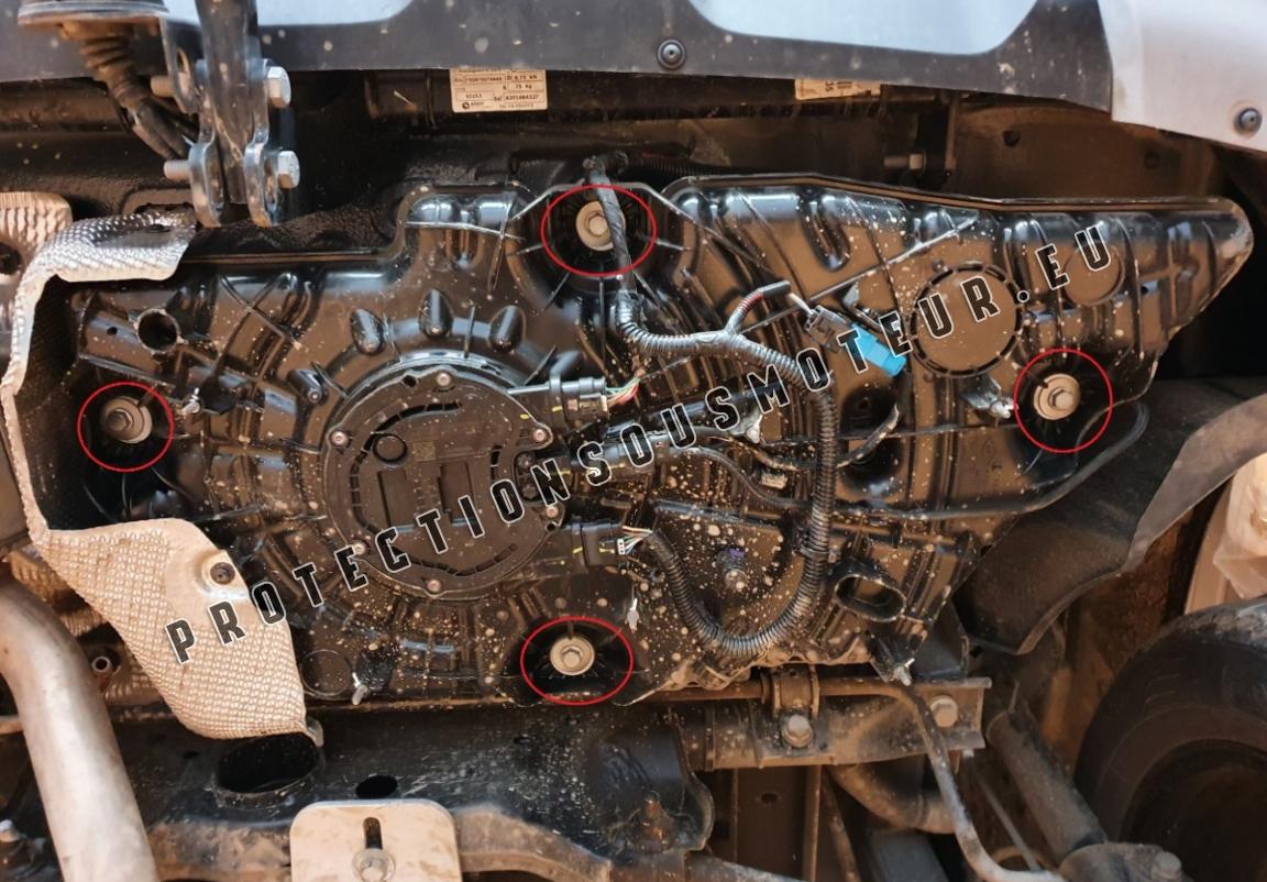 | Chaque voiture a des trous de vis fabriqués en usine pour le montage de la plaque de protection, ce qui rend le montage très facile. Vous pouvez le faire vous-même ou à n'importe quel point de service automatique. |