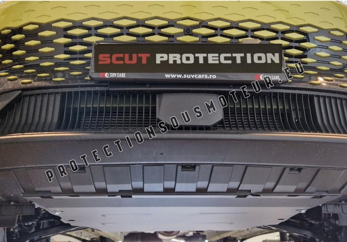 | Protège | le bas du moteur, la boîte de vitesses, radiateur |