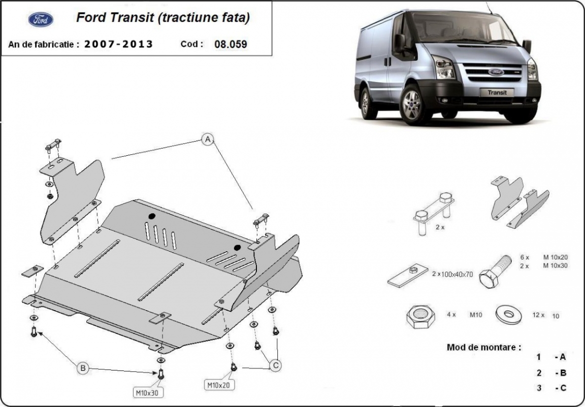 Cache sous moteur et de la boîte de vitesse Ford Transit - Traction