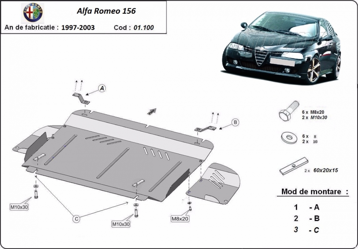 Cache sous moteur et de la boîte de vitesse Alfa Romeo 156 (1997-2003)