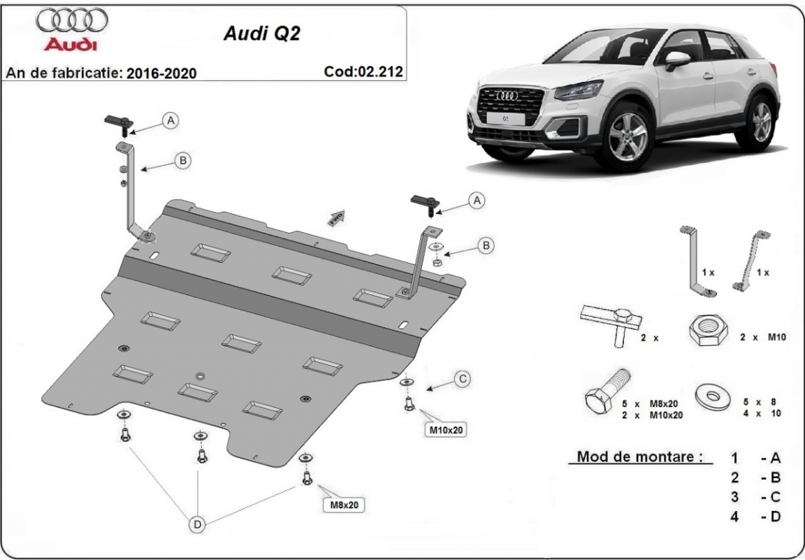 Le cache métallique protège: le bas du moteur, la boîte de vitesses, radiateur Le cache de protection est réalisé en Acier thermolaqué avec une épaisseur de 2 mm. Vis, écrous, pinces, tous les accessoires de fixation sont inclus. Toutes les plaques de protection sont revêtues de poudre pour prévenir la corrosion. L'extérieur de la plaque de protection est doté de renforts en Acier thermolaqué, ce qui augmente la résistance aux chocs. |