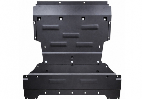 Le cache métallique protège: le bas du moteur, la boîte de vitesses, Boîtier de direction assistée électrique, Différentiel avant Le cache de protection est réalisé en Acier thermolaqué avec une épaisseur de 2 mm. Vis, écrous, pinces, tous les accessoires de fixation sont inclus. Toutes les plaques de protection sont revêtues de poudre pour prévenir la corrosion. L'extérieur de la plaque de protection est doté de renforts en Acier thermolaqué, ce qui augmente la résistance aux chocs. |