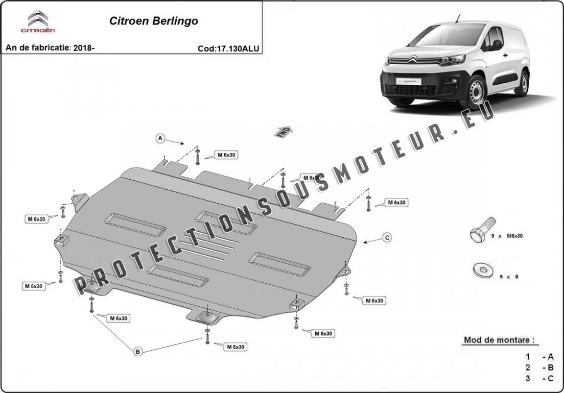 Cache sous moteur et de la boîte de vitesse Citroen Berlingo Aluminium (2018-2026)