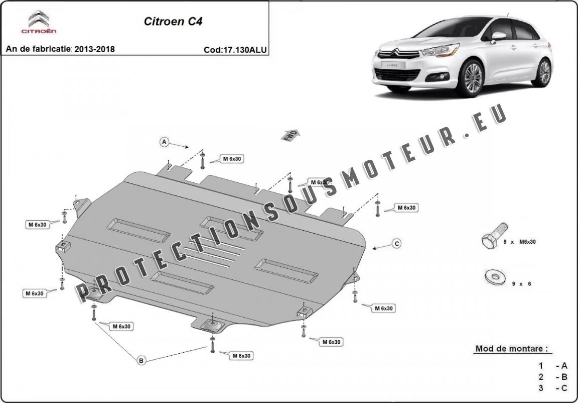 Cache sous moteur et de la boîte de vitesse Citroen C4 Aluminium (2013-2018)
