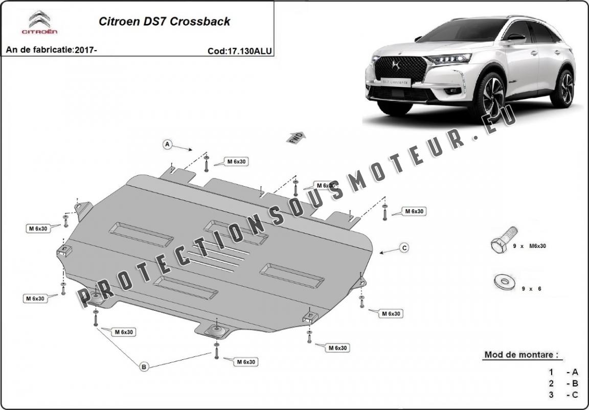 Cache sous moteur et de la boîte de vitesse Citroen DS7 Crossback Aluminium (2017-2026)