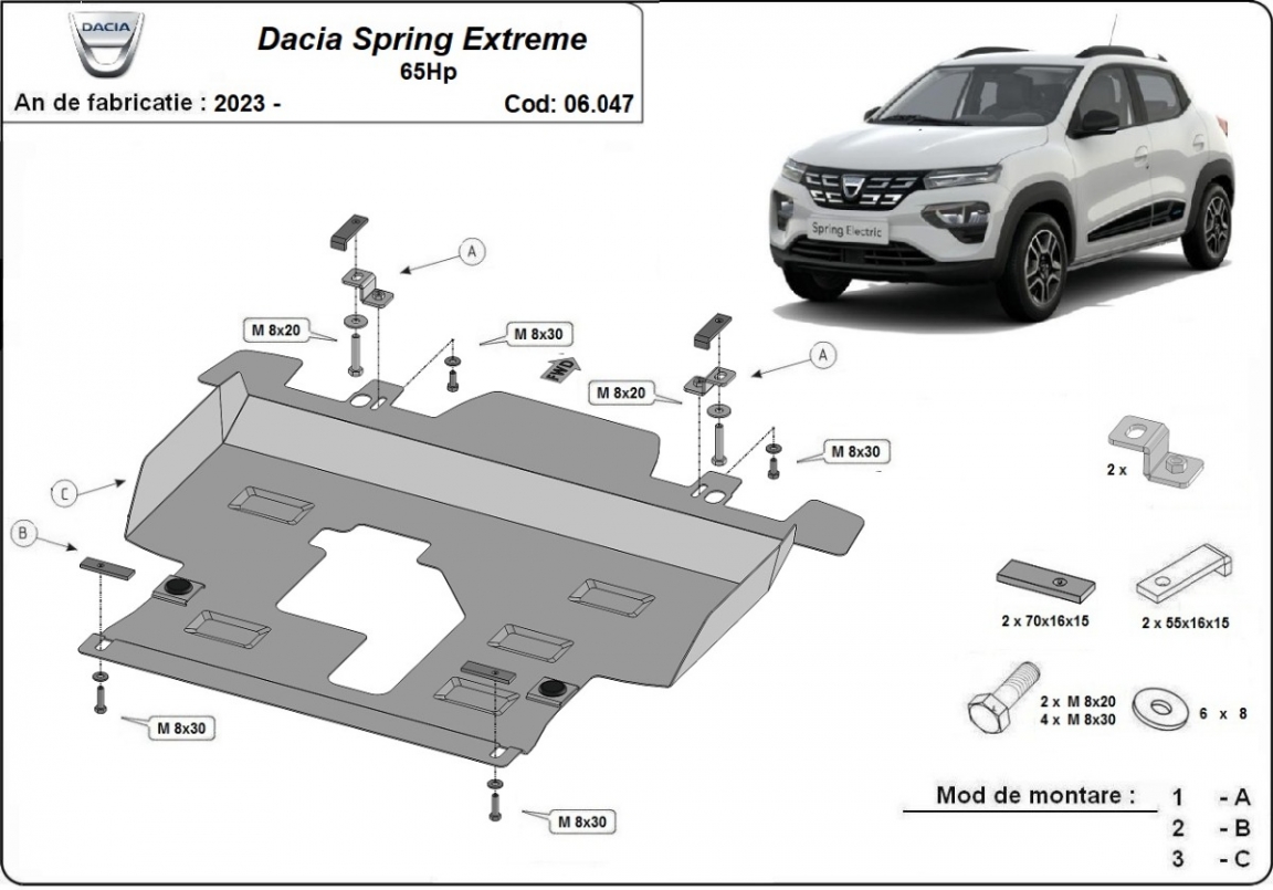 Snelle levering, zonder schade. Plaatsen van beschermplaat op Dacia Spring is eenvoudig. Goede bescherming en brengt stabiliteit aan de wagen. Grote voldoening van het product