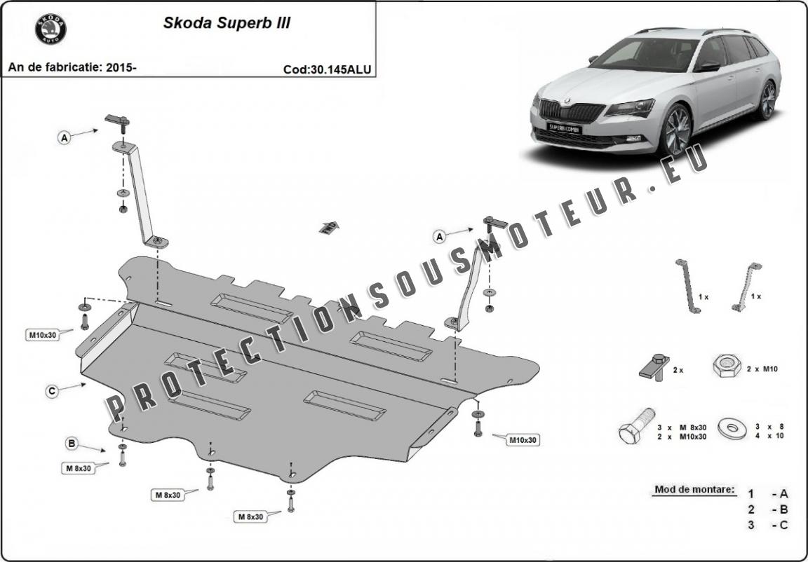 Cache sous moteur et de la boîte de vitesse en aluminium Skoda Superb III (2015-2025)
