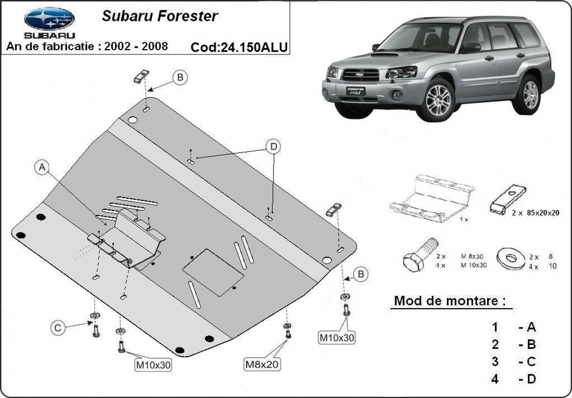Cache sous moteur et de la boîte de vitesse en aluminium Subaru Forester 2 (2002-2008)