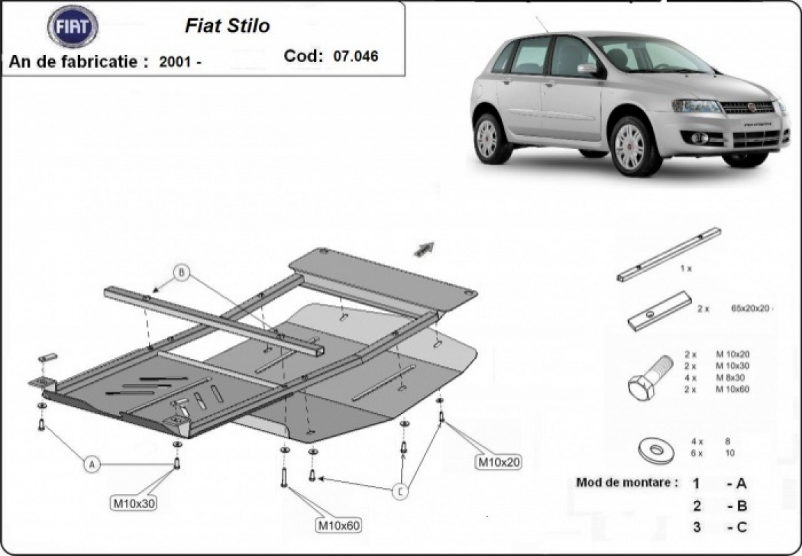 Cache sous moteur et de la boîte de vitesse Fiat Stilo (2001-2010)