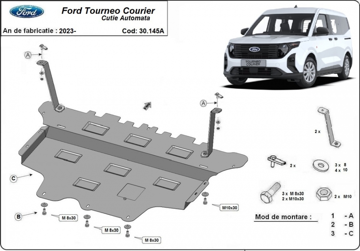 Cache sous moteur et de la boîte de vitesse Ford Tourneo Courier - Boîte de vitesse automatique (2023-2026)
