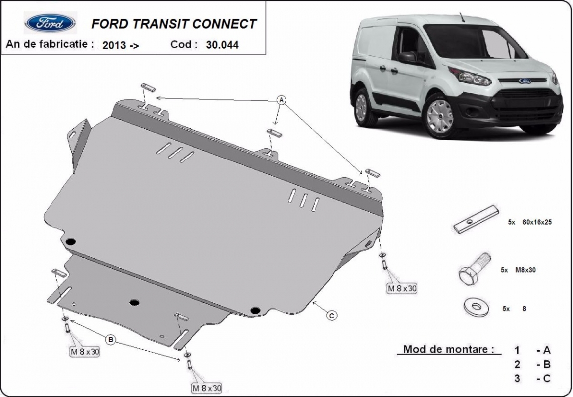 Cache sous moteur et de la boîte de vitesse Ford Transit Connect