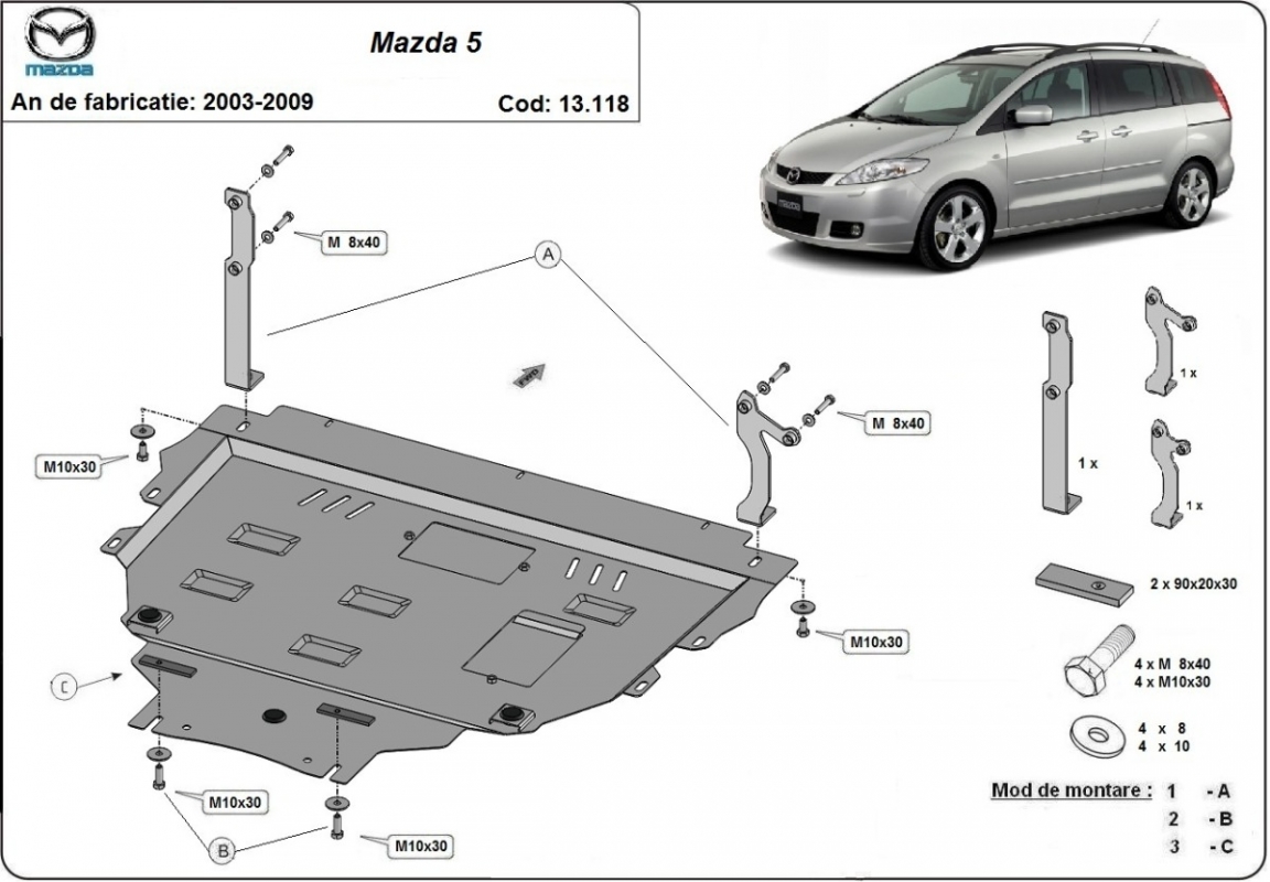 Cache sous moteur et de la boîte de vitesse Mazda 5 (2003-2009)