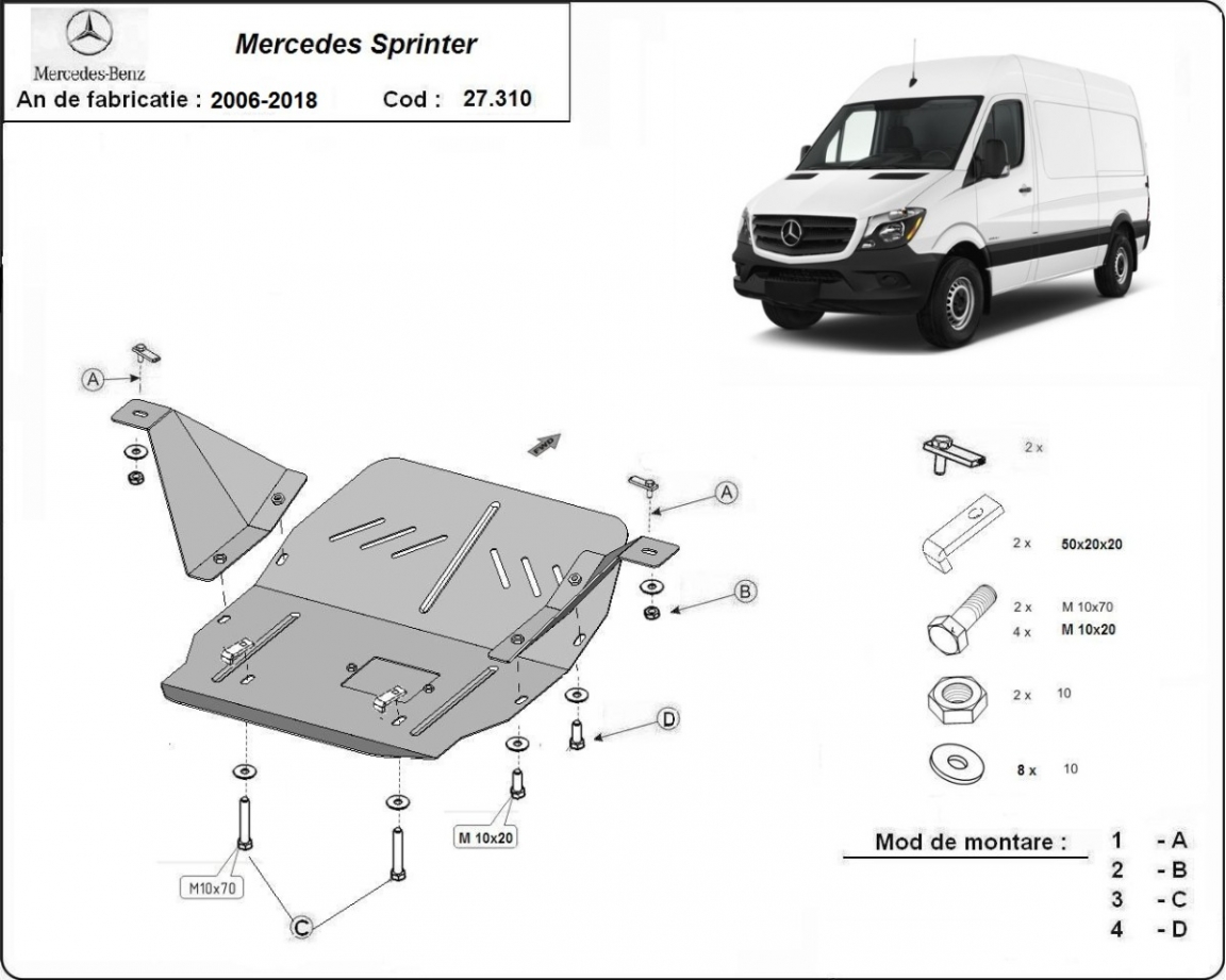 Cache sous moteur et de la boîte de vitesse Mercedes Sprinter