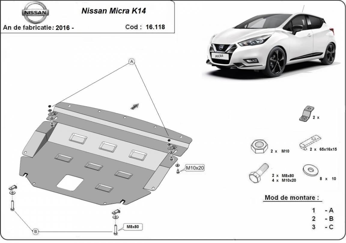 Cache sous moteur et de la boîte de vitesse Nissan Micra (2016-2026)