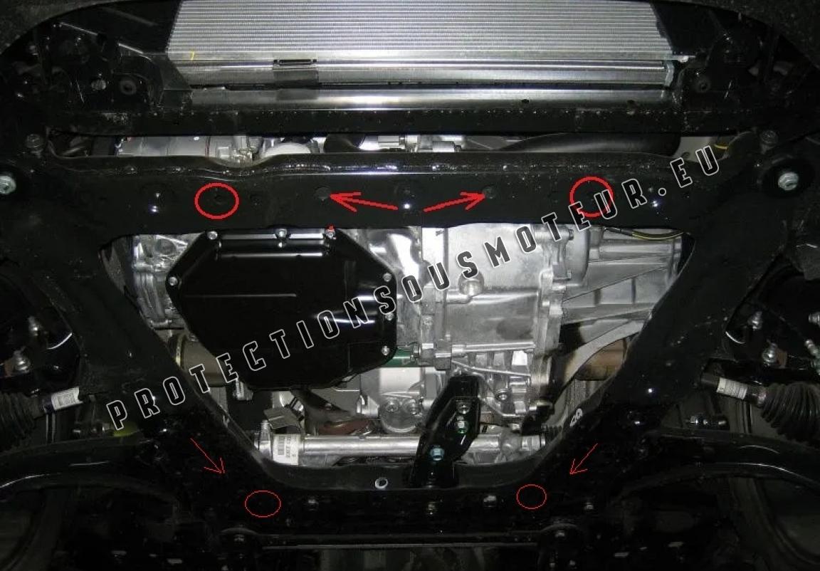 Le cache métallique protège: le bas du moteur, la boîte de vitesses Il y a une ouverture pour le carter d'huile, il n'est donc pas nécessaire de l'enlever pour changer l'huile. Le cache de protection est réalisé en Acier thermolaqué avec une épaisseur de 2 mm. Vis, écrous, pinces, tous les accessoires de fixation sont inclus. Toutes les plaques de protection sont revêtues de poudre pour prévenir la corrosion. L'extérieur de la plaque de protection est doté de renforts en Acier thermolaqué, ce qui augmente la résistance aux chocs. |