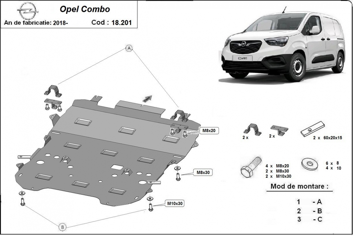 Cache sous moteur et de la boîte de vitesse Opel Combo C (2018-2026)