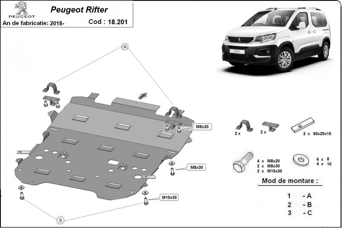 Cache sous moteur et de la boîte de vitesse Peugeot Rifter / Partner (2018-2026)