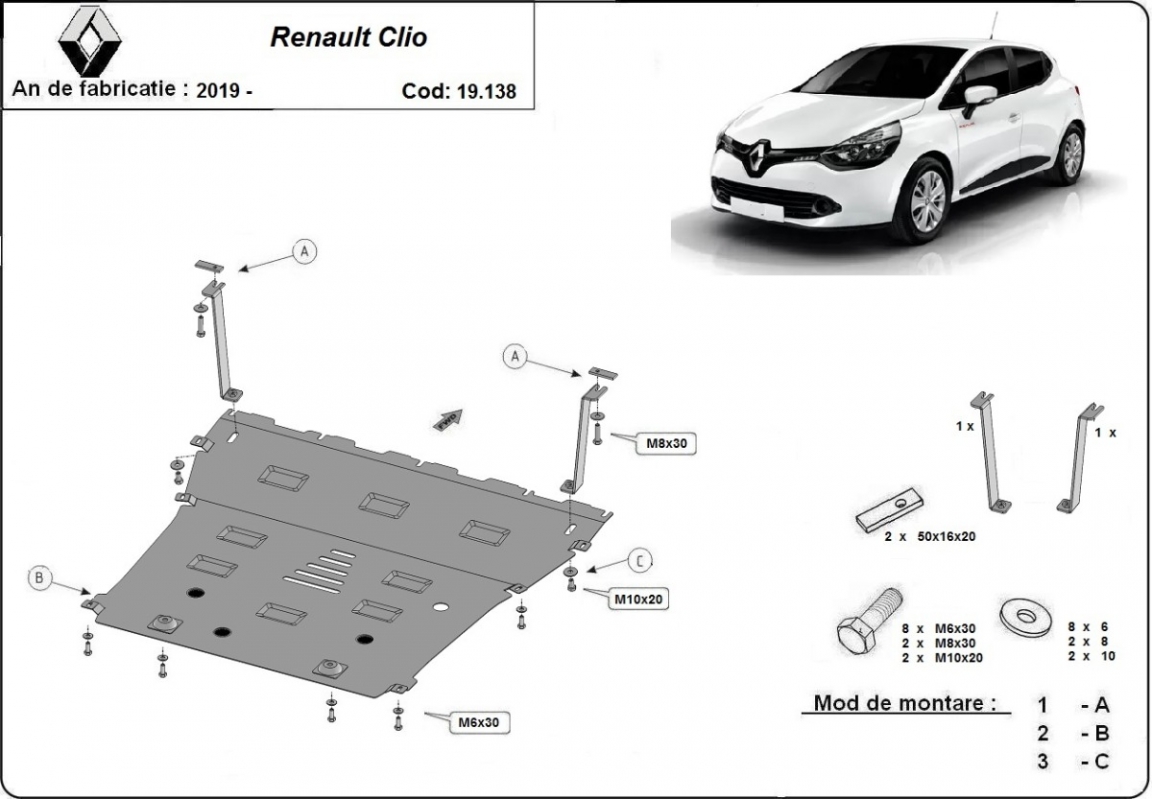 Cache sous moteur et de la boîte de vitesse Renault Clio 5 (2019-2026)