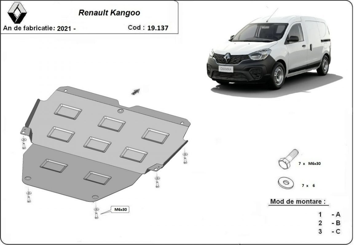 Cache sous moteur et de la boîte de vitesse Renault Kangoo (2021-2026)
