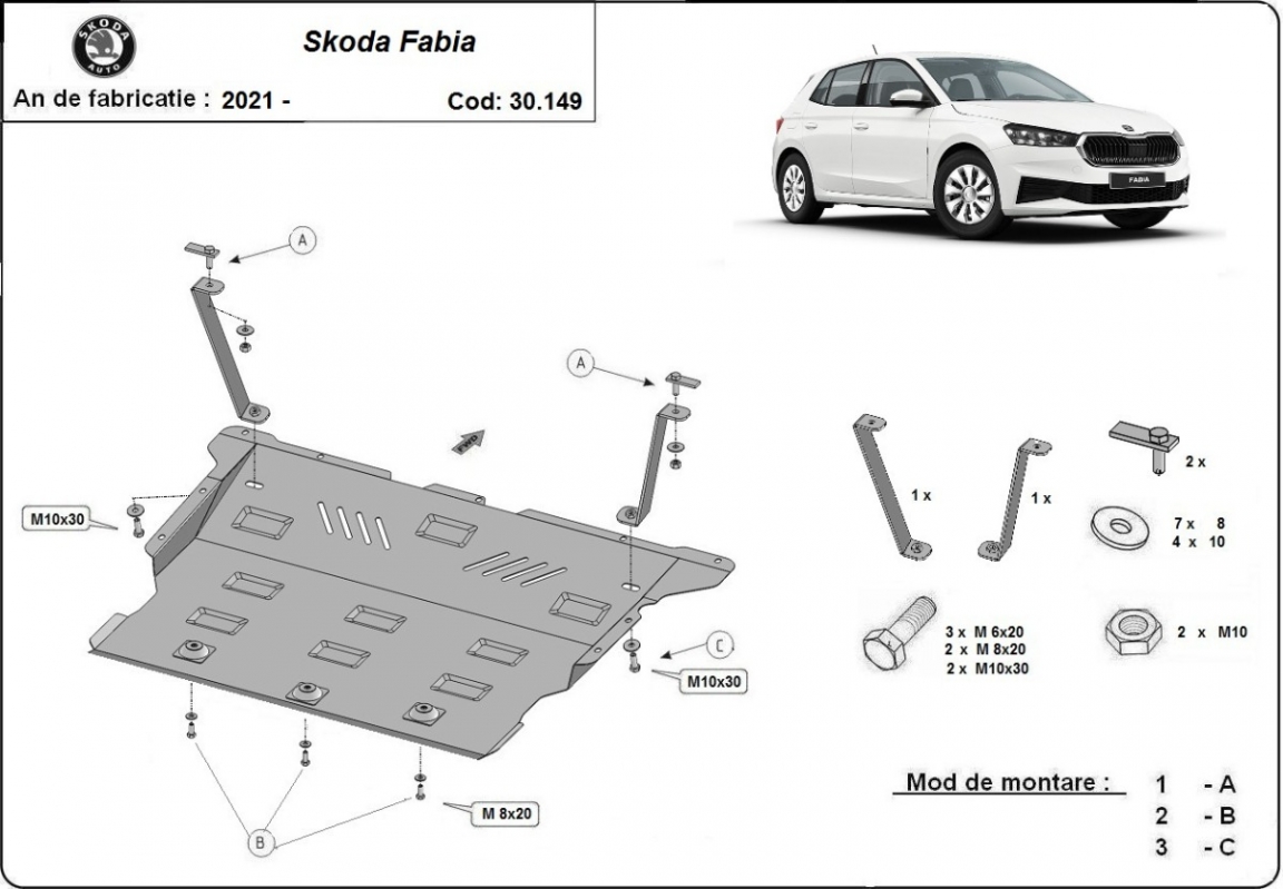Cache sous moteur et de la boîte de vitesse Skoda Fabia (2021-2026)