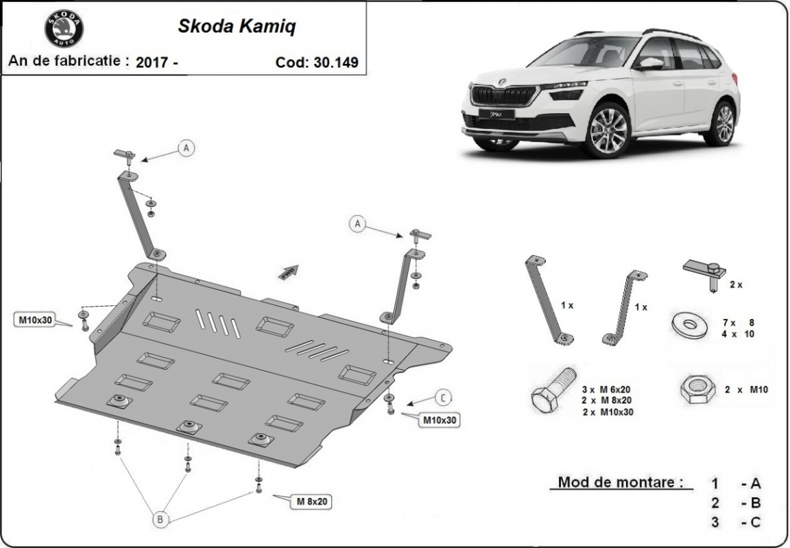 Cache sous moteur et de la boîte de vitesse Skoda Kamiq (2019-2026)