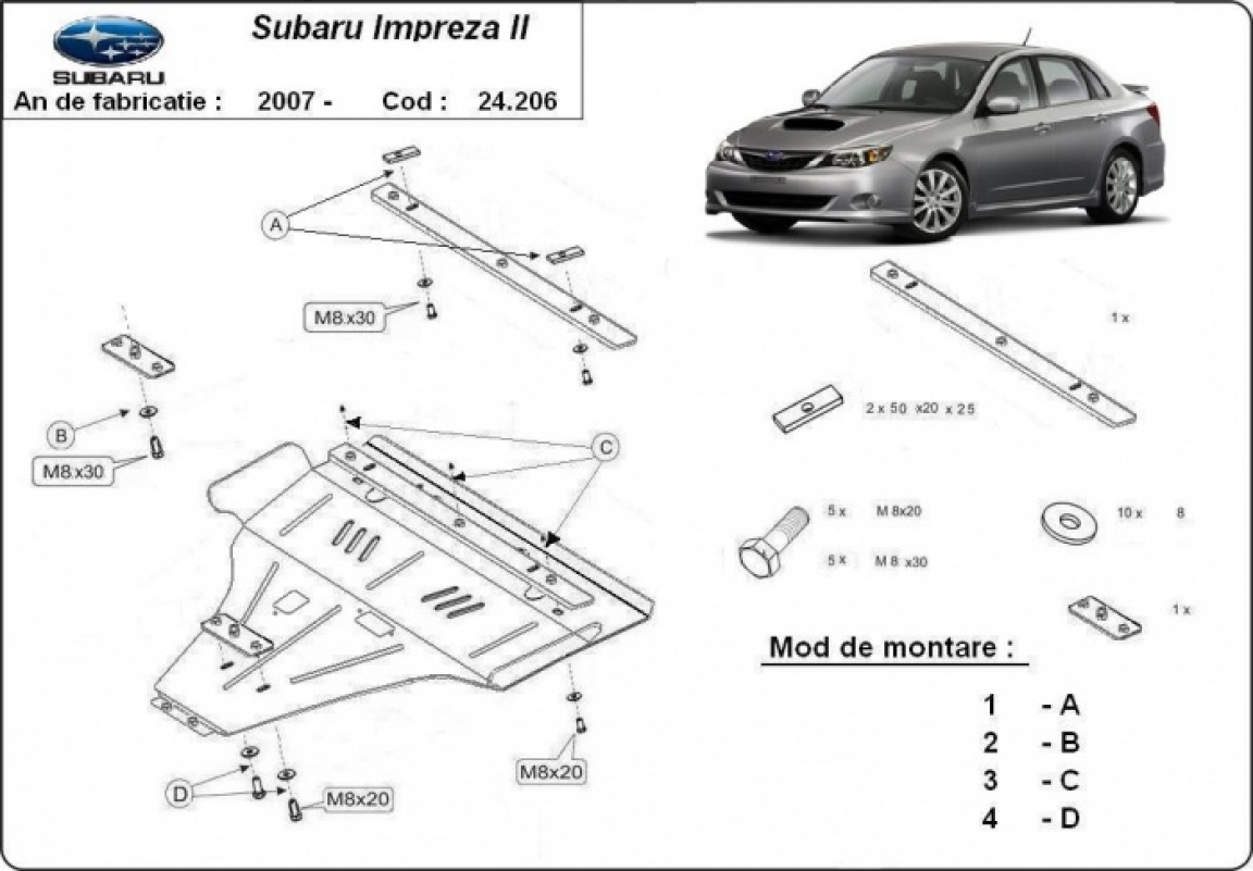 Cache sous moteur et de la boîte de vitesse Subaru Impreza Petrol