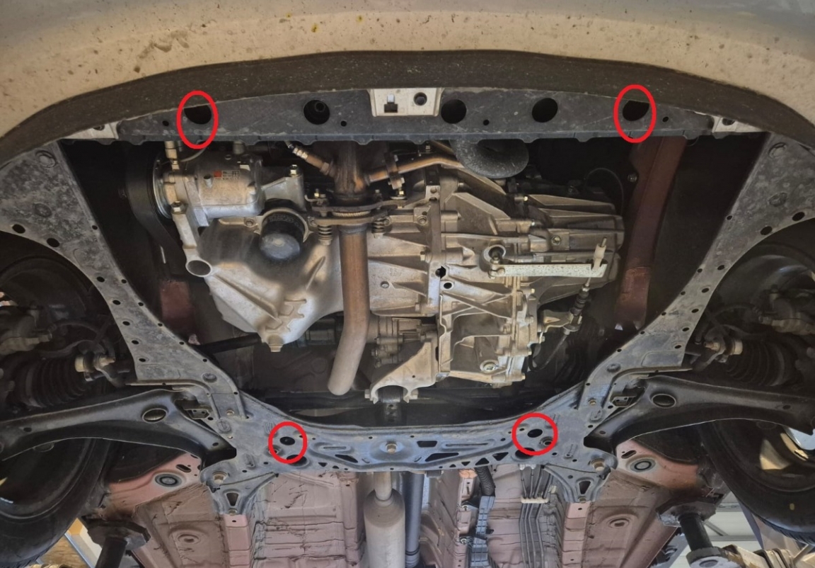 | Chaque voiture a des trous de vis fabriqués en usine pour le montage de la plaque de protection, ce qui rend le montage très facile. Vous pouvez le faire vous-même ou à n'importe quel point de service automatique. |