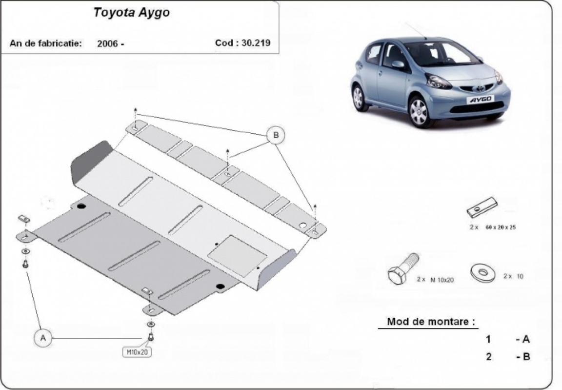 Cache sous moteur et de la boîte de vitesse Toyota Aygo AB10 (2005-2014)