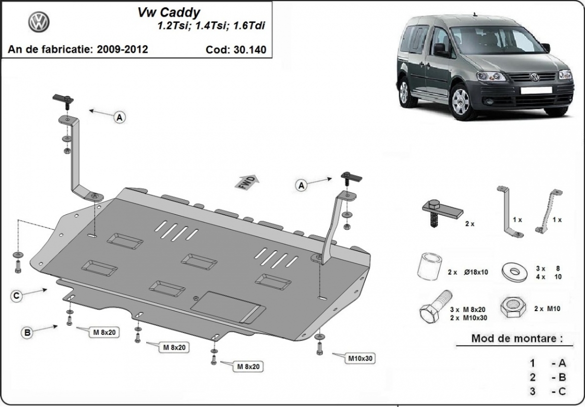 Cache sous moteur et de la boîte de vitesse Volkswagen Caddy (2010-2012)