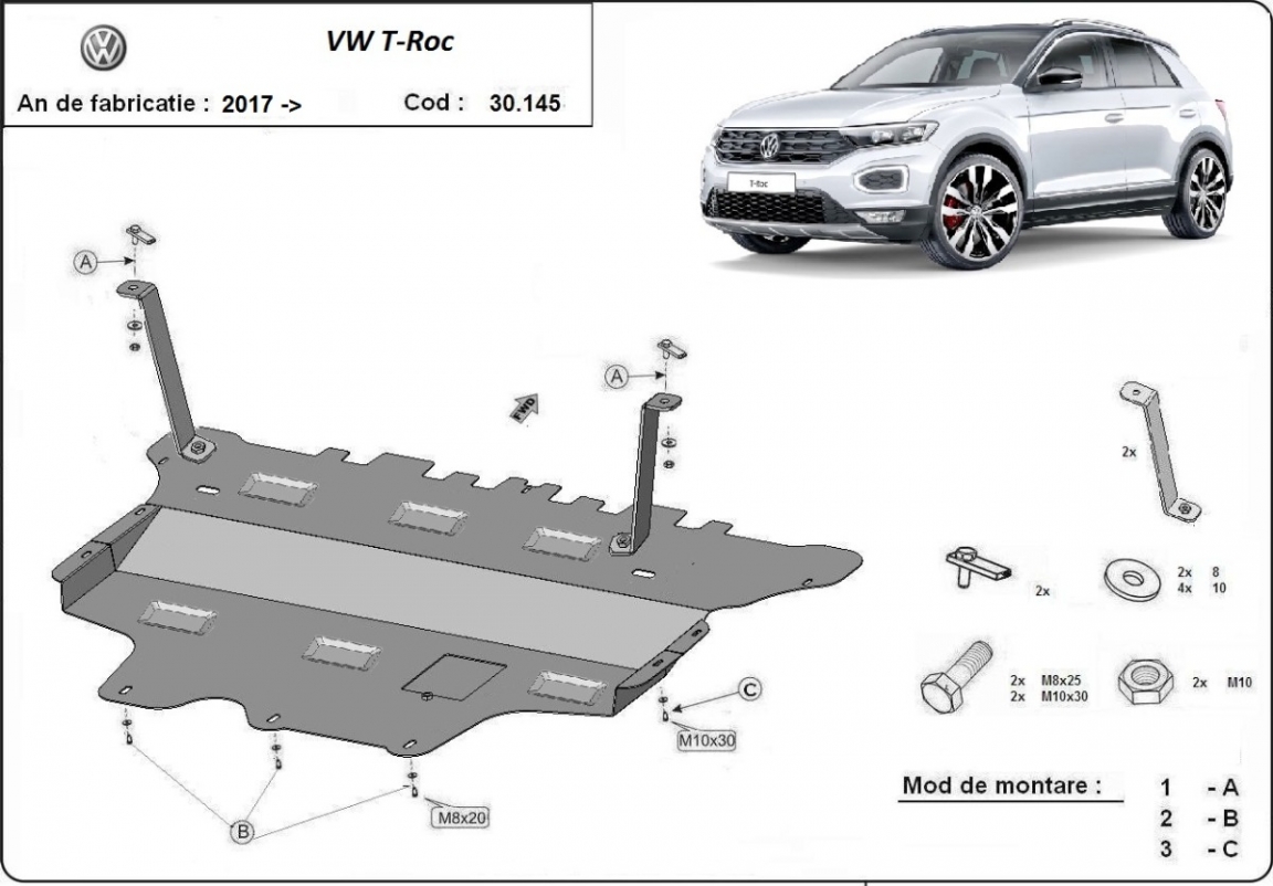 Cache sous moteur et de la boîte de vitesse Volkswagen T-Roc - boîte de vitesses manuelle (2017-2026)