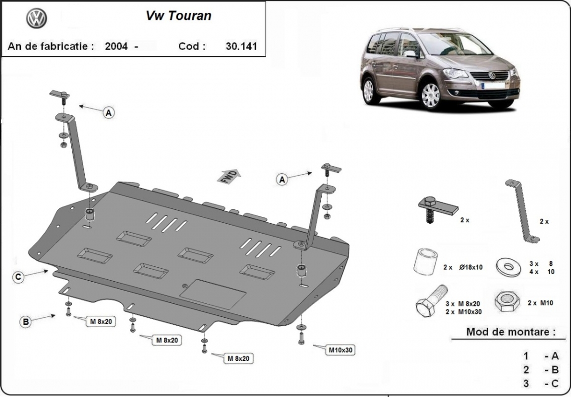 Cache sous moteur et de la boîte de vitesse Volkswagen Touran (2003-2015)