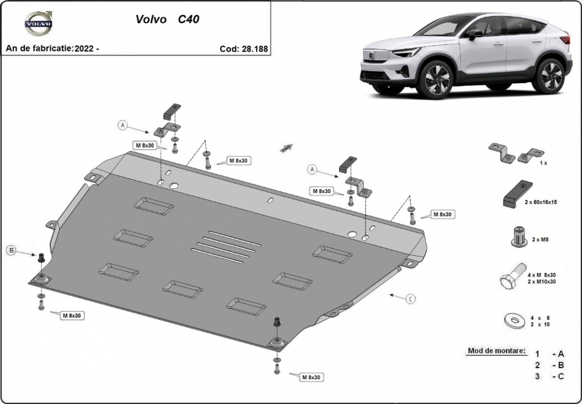 Cache sous moteur et de la boîte de vitesse Volvo C40 (2022-2026)