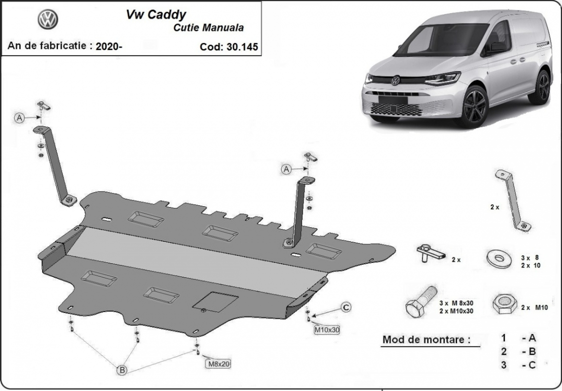 Cache sous moteur et de la boîte de vitesse VW Caddy (2020-2026)
