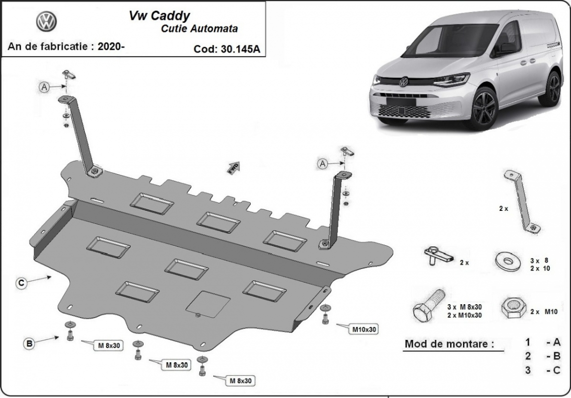Cache sous moteur et de la boîte de vitesse VW Caddy - Boîte de vitesse automatique (2020-2026)
