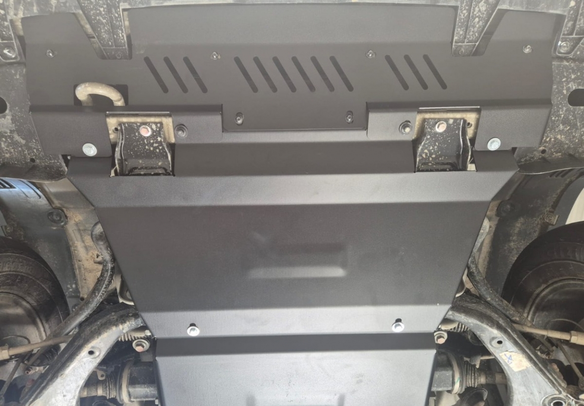 Le cache métallique protège: le bas du moteur, radiateur Le cache de protection est réalisé en Acier thermolaqué avec une épaisseur de 3 mm. Vis, écrous, pinces, tous les accessoires de fixation sont inclus. Toutes les plaques de protection sont revêtues de poudre pour prévenir la corrosion. L'extérieur de la plaque de protection est doté de renforts en Acier thermolaqué, ce qui augmente la résistance aux chocs. |