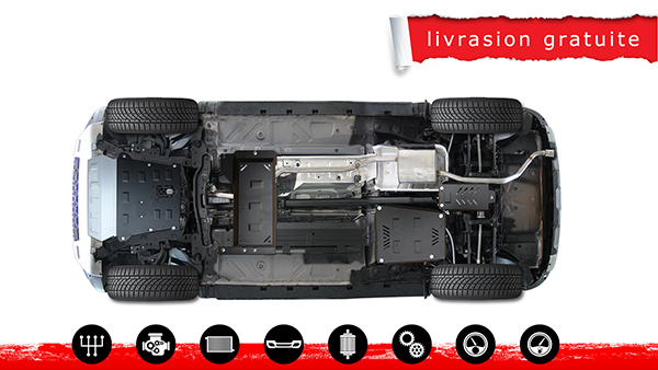 | Le montage de votre plaque de protection ne nécessite aucune modification mécanique de la structure du véhicule. |